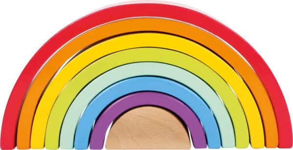 Questo gioco è composto da 7 archi variopinti in legno laccato ed è un importante aiuto nella sfida per la motricità fine delle mani! Anche il riconoscimento di forme e colori viene allenato in modo ludico.