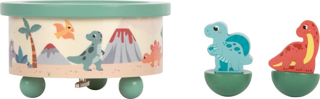 Questo carillon in legno è una vera e propria attrazione per i piccoli fan dei dinosauri. Le due simpatiche figure di dinosauri girano dolcemente l’una intorno all’altra, sulla parte superiore del carillon, sulle note della melodia del brano “Carousel Waltz”. I due dinosauri in legno sono rimovibili. Grazie alla sua leggerezza e facilità nel maneggiarlo, questo carillon può essere utilizzato anche dai bambini in maniera indipendente.