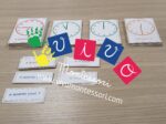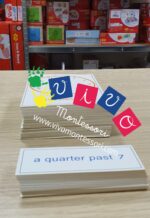 Si tratta di carte che riproducono un orologio dove sono posizionate le lancette in ore diverse. Le schede sono sia mute che parlate inoltre sono presenti i cartellini con le ore.