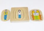 E’ composto da una tavoletta di legno su cui verranno composti uno sopra l’altro i puzzle della vita dell’uomo