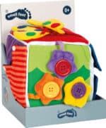 Dado di stoffa imbottita che presenta diversi tipi di chiusure! Con questo articolo i bambini possono allenare la motricità: su ogni lato del dado si trovano diverse chiusure quali lacci, bottoni, chiusura a lampo, bottoni a pressione, chiusura con velcro e nastri di nylon! Larghezza: 16X16X16