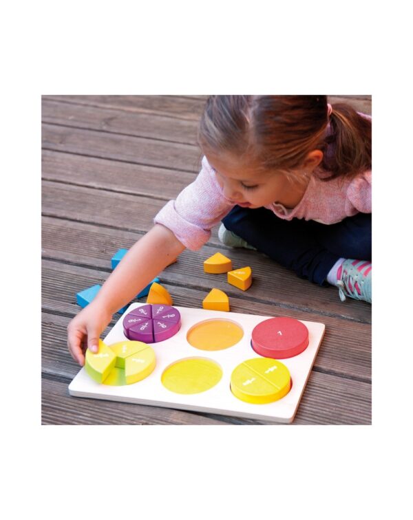 Ogni cerchio può essere associato in base al suo colore e al numero di frazioni. Il tabellone comprende da 1 a 6 frazioni.