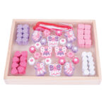 Con questa splendida collezione di perline in legno colorate a tema “Fate”, corredate di lacci per infilarle, le possibilità creative sono infinite. Sviluppa la motricità fine. Una volta finito di giocare, tutti i pezzi possono essere riposti in ordine nella scatola di legno
