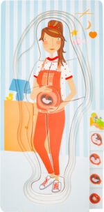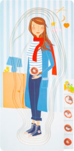 I diversi strati del puzzle sono illustrati a titolo semplificativo sul lato destro del puzzle, con delle immagini del bambino che cresce nella pancia. Un puzzle didattico e divertente!