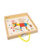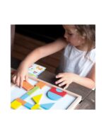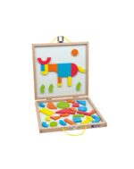 Scatola con tante forme magnetiche colorate per creare figure differenti. Sono incluse 12 carte con 24 templates da seguire per ricreare le forme disegnate. La scatola in legno è dotata di pratici manici e di chiusura per essere trasportata.