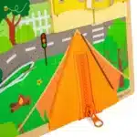 Sviluppa la motricità fine e la destrezza dei bambini mentre esplorano ogni diverso componente. Sciogliete un lucchetto, una chiusura o una cerniera in qualsiasi punto del tabellone, mentre le scene nascoste vengono svelate sotto di esso.