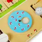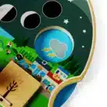 è realizzato in legno certificato FSC® proveniente da fonti sostenibili e colorato con vernici e lacche atossiche. È conforme agli attuali standard di sicurezza europei. 35,2 cm di altezza x 27,5 cm di larghezza x 3,5 cm di profondità. Adatto a partire da 2 anni.
