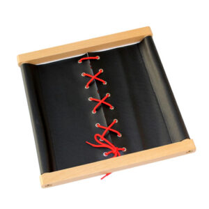 I telai delle allacciature preparano il bambino all’indipendenza e all’autonomia e favoriscono lo sviluppo della concentrazione. Permettono inoltre lo sviluppo della coordinazione oculo-manuale.